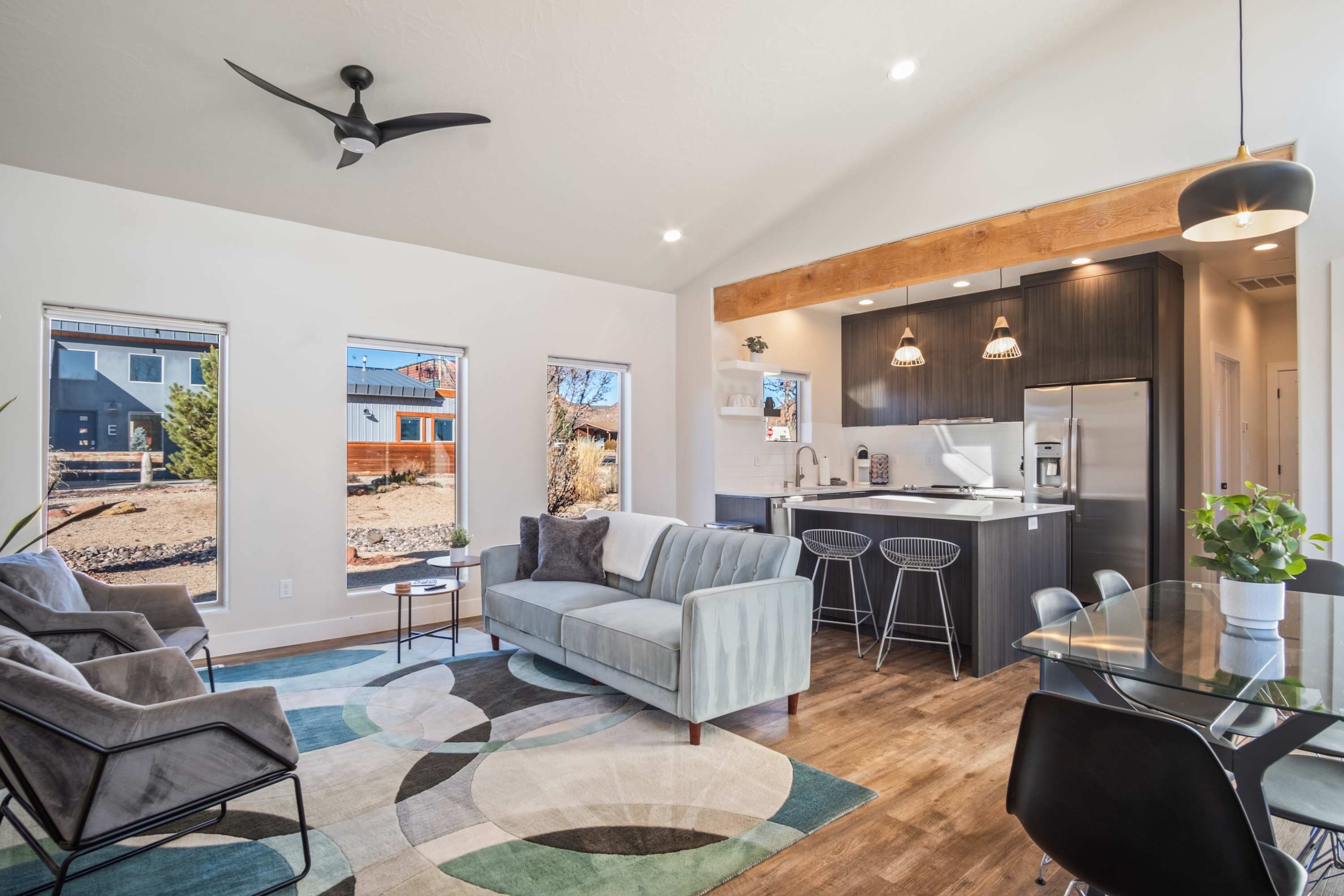 Modern design meets luxe comfort at Timber + Tin C in Kanab. Experience the perfect blend of sleek design and plush comfort in this two bedroom, two bath vacation home. Unwind in your private sanctuary and let the journey begin.