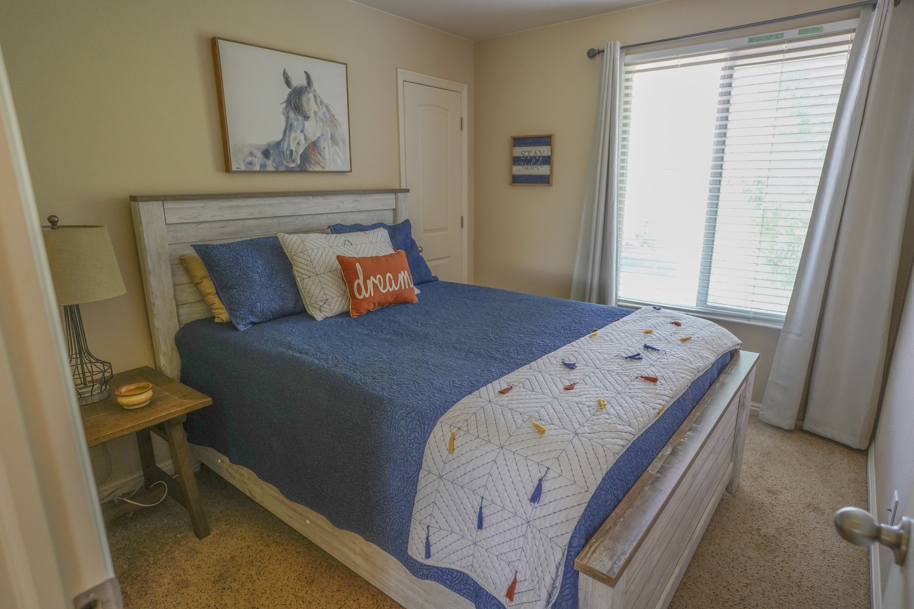 Wild Rose Country offers 3 bedrooms upstairs. The spacious master bedroom has a queen sized bed, ensuite bathroom with a garden tub and shower. The first guest bedroom has a queen bed and there are two twin beds in the third guest bedroom. There are night stands, luggage racks and large closets to store all your things.